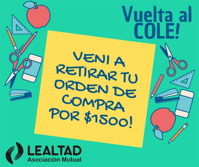 A partir del Lunes 10/02 vas a poder retirar tu ORDEN DE COMPRA en nuestra SEDE CENTRAL para la VUELTA AL COLE!!! * * Válido para socios que acrediten cuota social y cuota préstamo al día presentando DNI y certificado de alumno regular o partida de nacimiento del niño/a en edad escolar.