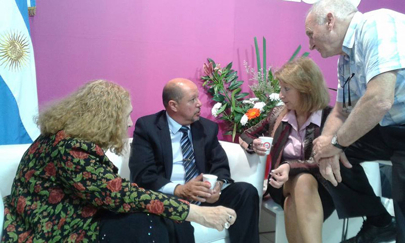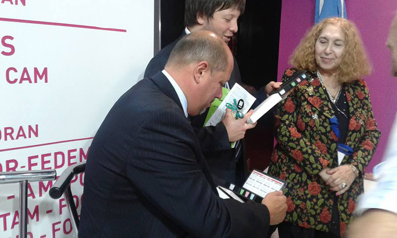El Director de la Cátedra Libre de Economía Social y Mutuales de la Universidad de La Plata (UNLP), Presidente de la Asociación Mutual Empleados Bonaerenses (AMEBO) y Presidente de la Federación de Mutuales Regionales de La Plata (FMRLP), Sr. Carlos Gaskín, y los integrantes de la misma Federación, Sres. Pablo Rocha y Hugo Taboada, se acercaron al stand mutualista de la 43º Edición de la Feria Internacional del Libro, junto a La Presidenta de la Confederación Nacional de Mutualidades de la República Argentina (CONAM), Dra. Rosa B. Rodríguez le entregaron una plaqueta a la Directora de la revista Mutualismo Hoy, Sra. Gladys Gorriz, en homenaje al esfuerzo y desempeño que impregna desde hace años en la Feria del Libro, para la difusión del mutualismo en toda la comunidad.