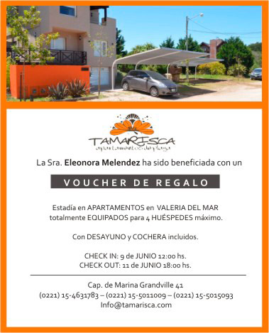 Cristina Cairo y Eleonora Melendez fueron las últimas ganadoras del sorteo de la estadía en los Apartamentos de playa TAMARISCA en Valeria del Mar. Gracias por compartir momentos de sus vacaciones con nosotros!
